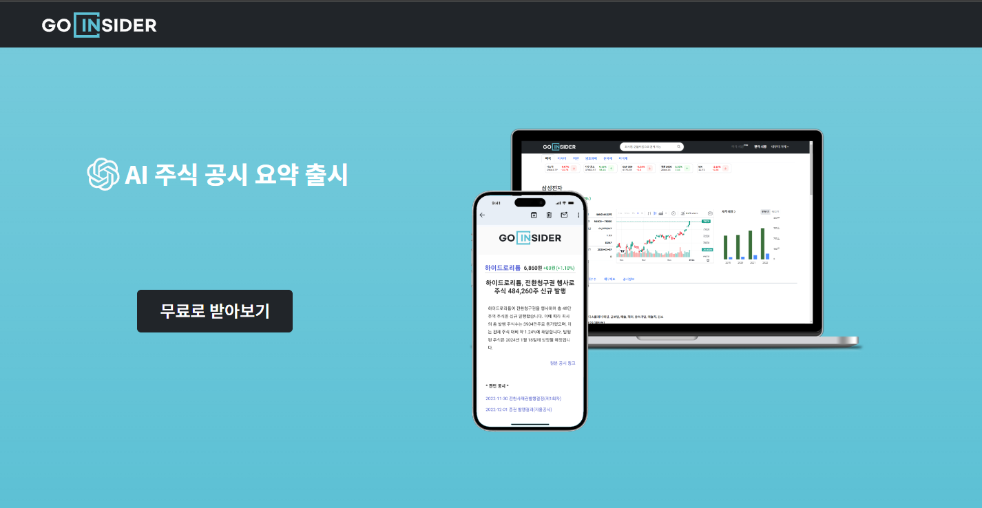 고인사이더(https://goinsider.kr)에서 AI 요약을 드디어 메인페이지에서도 제공하고, 텔레그램으로도 볼 수 있는 서비스를 출시했습니다. 한국 투자를 하시는 분들에게 유용할 것 같아 한번 소개해보려고 합니다. 1. 메인페이지 (최신 공시 AI 요약) 오른쪽 부분에 최신 공시 AI 요약이 있고, 거의 초단위로 업데이트가 됩니다. 위의 공시를 클릭하시거나 더보기 버튼을 누르면 아래와 같은 화면으로 이동합니다. 보고 싶은 공시를 클릭하면 아래와 같이 AI가 요약한 공시를 한눈에 볼 수 있고, 또한 특정한 기업을 검색해서 공시를 볼 수도 있고, 과거 날짜도 확인 가능합니다! 만약에 원하는 회사만 이메일로 받고 싶다하시면 검색하거나, 원하는 회사를 클릭하여, 알림 추가하시면 됩니다 2. 텔레그램 채널..